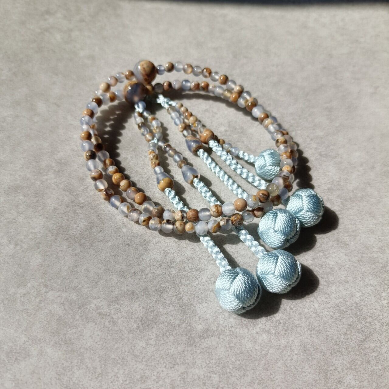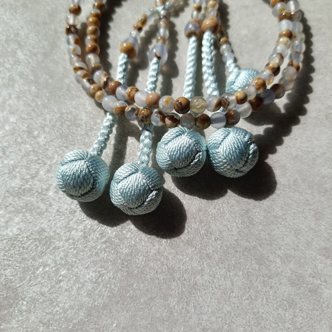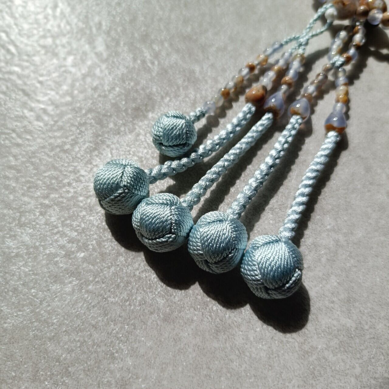 房の色は藍白で正絹独特の上品な艶がアース瑪瑙を一層際立たせてくれます。