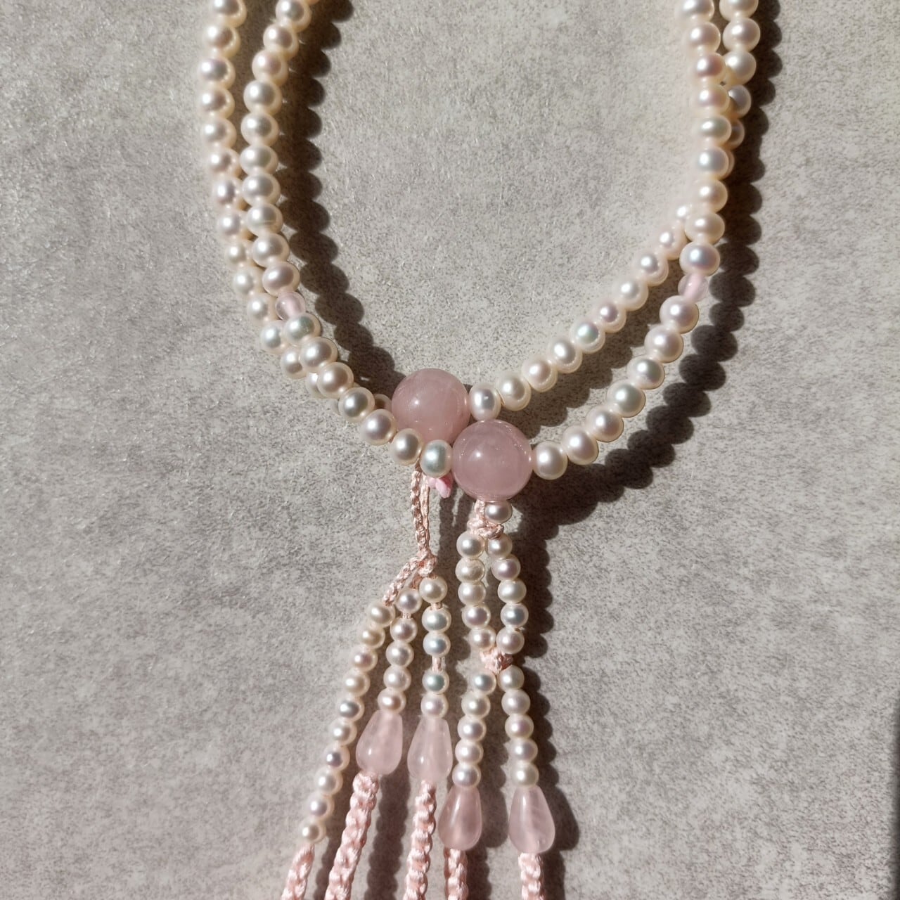 淡水パール ローズクォーツ仕立 日蓮宗数珠 八寸