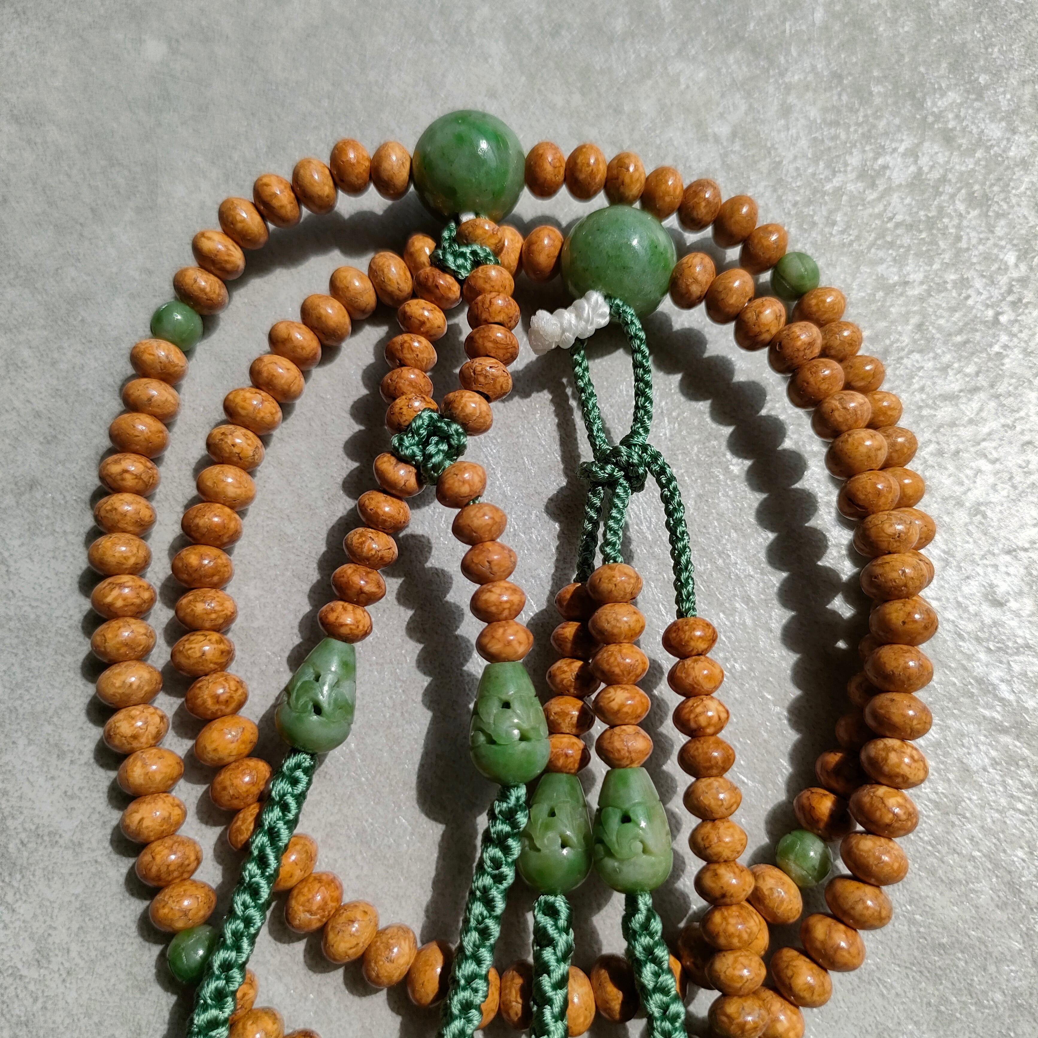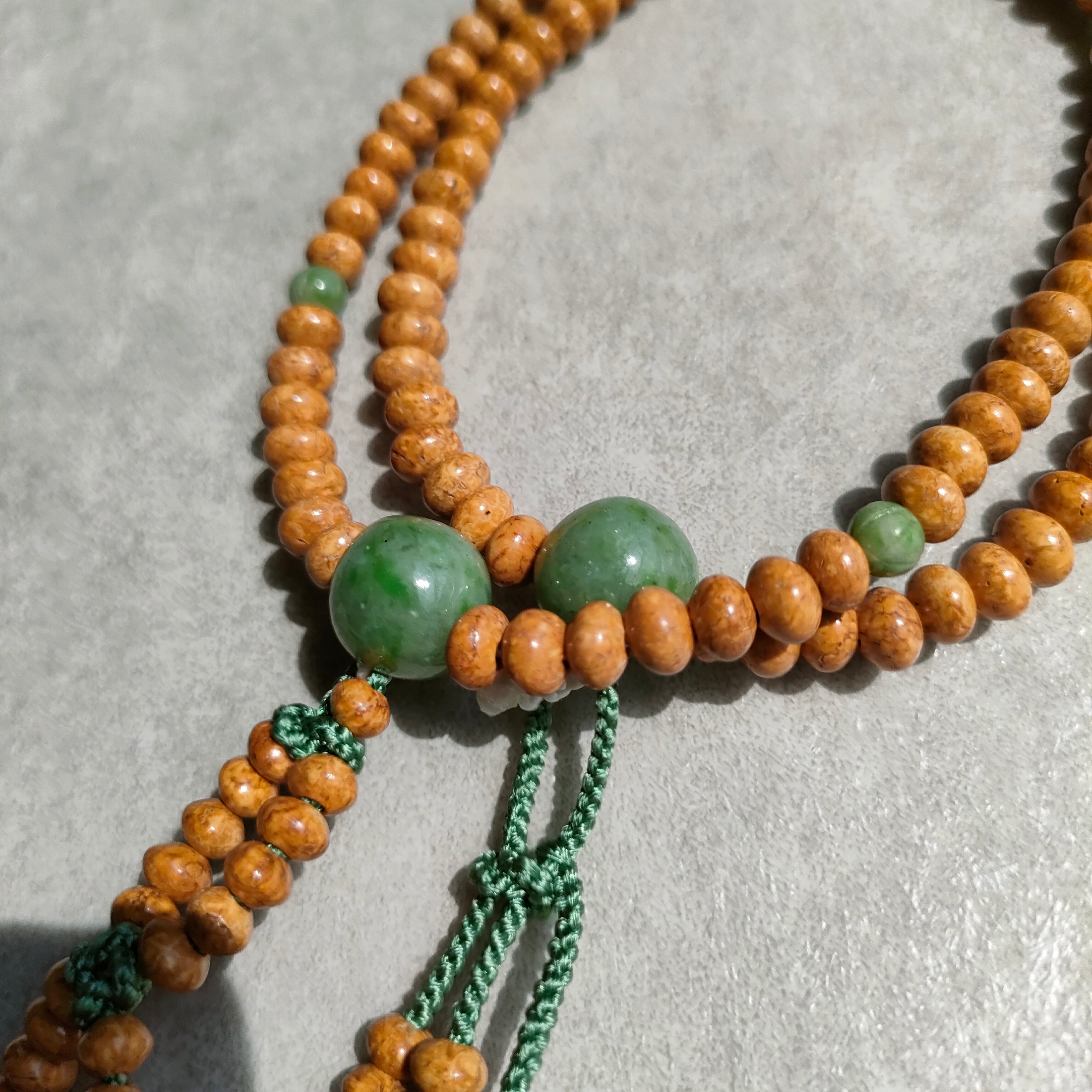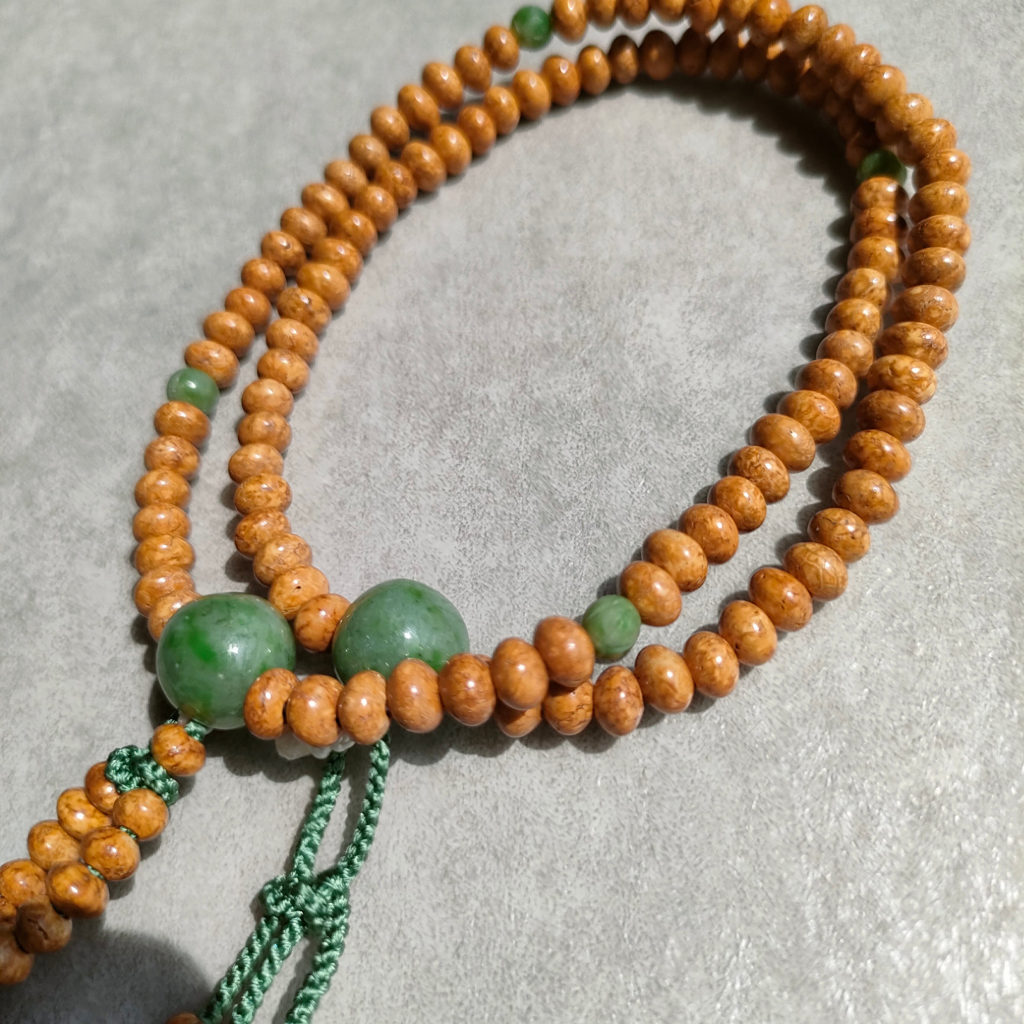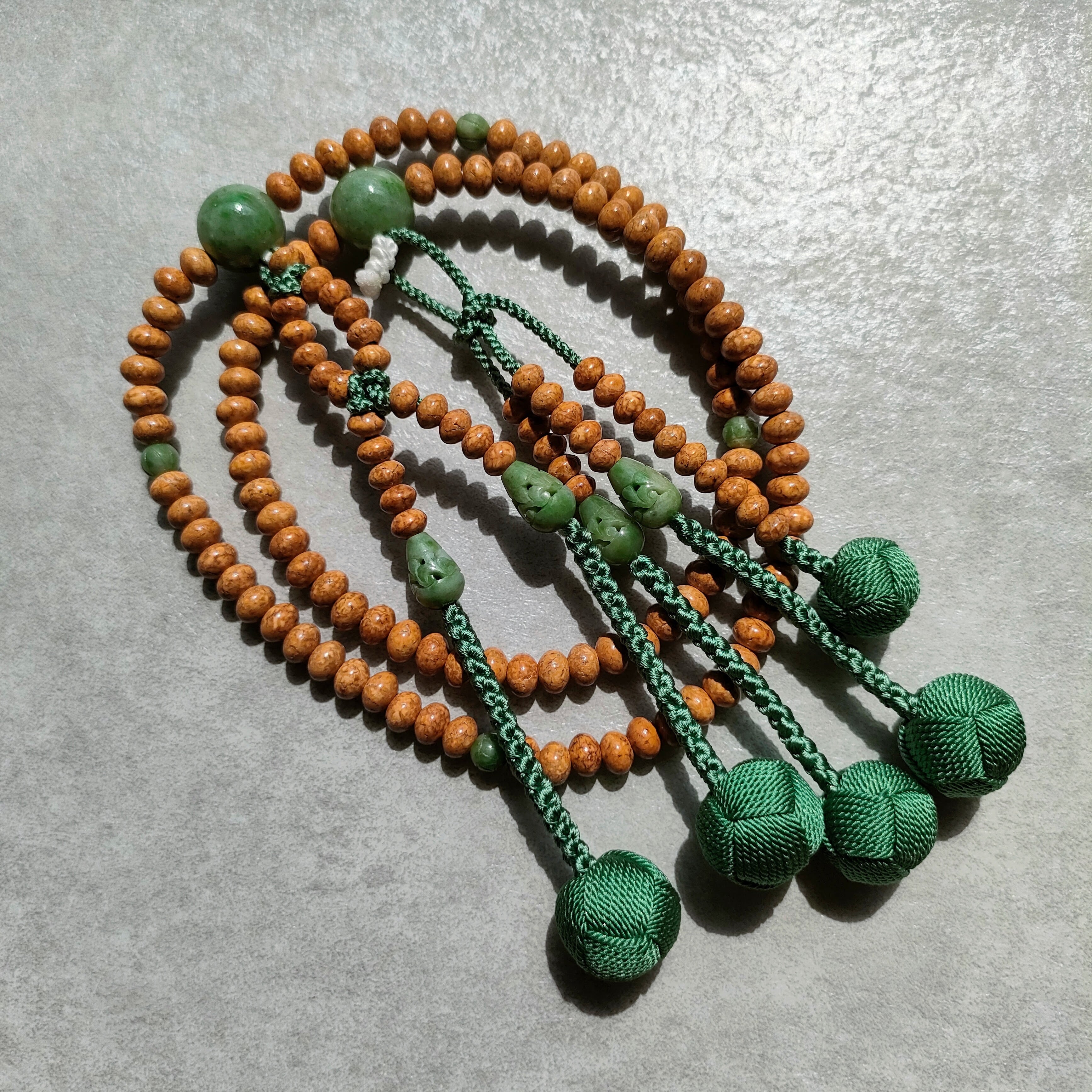 天竺菩提樹 アマゾン翡翠仕立 八寸平玉【日蓮宗数珠】