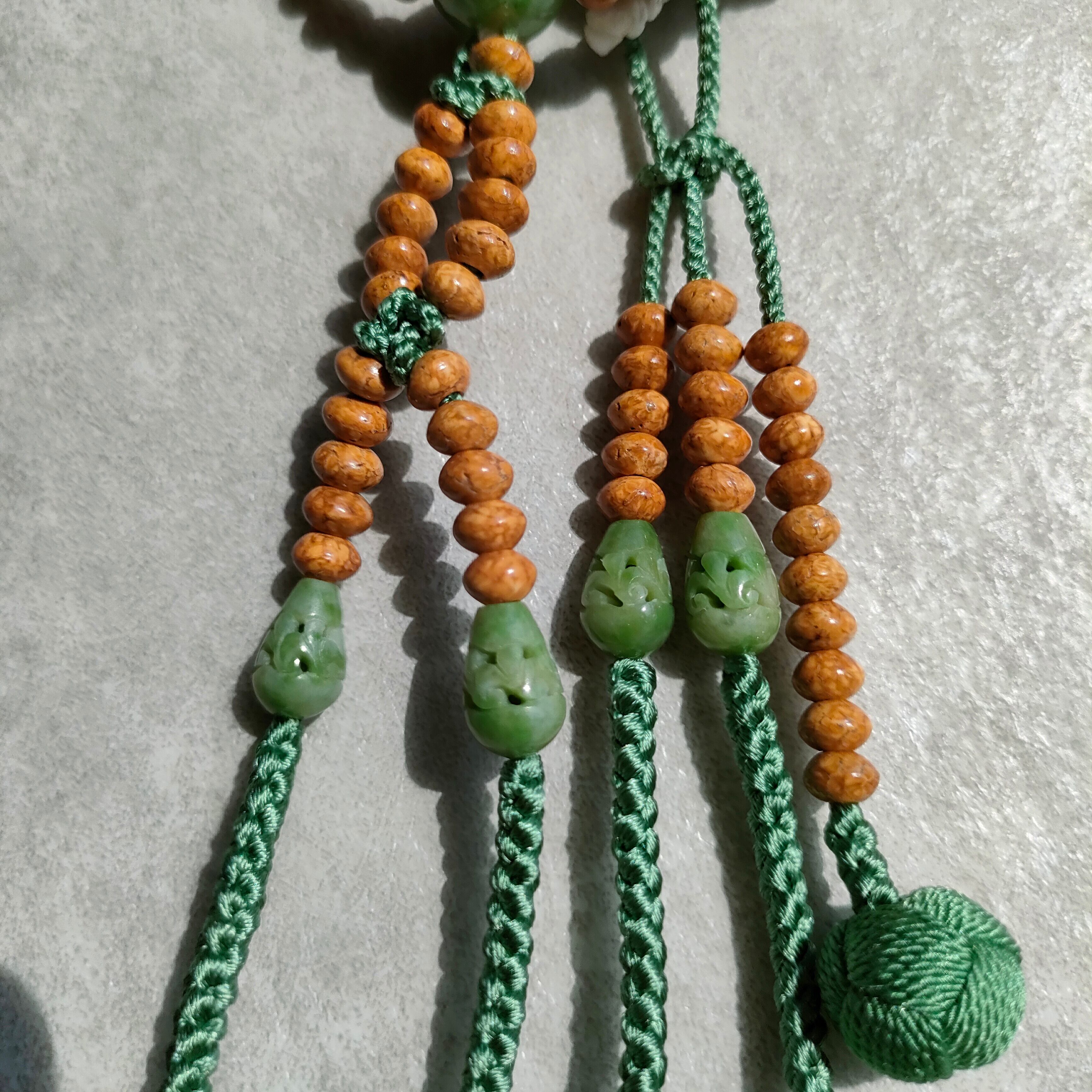 アマゾン地域で採取した翡翠を使用しており、房のツユ部分に使用されているアマゾン翡翠には細工が施されています。