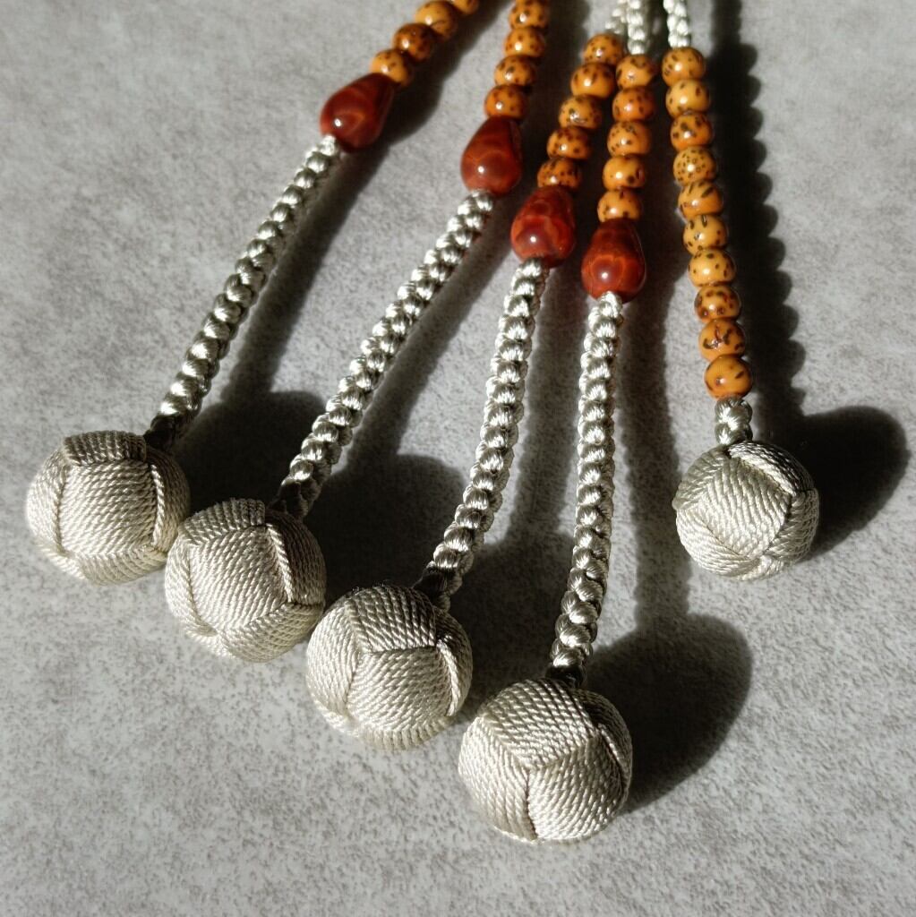 親玉、四天、つゆ玉は龍紋めのうを用いております。