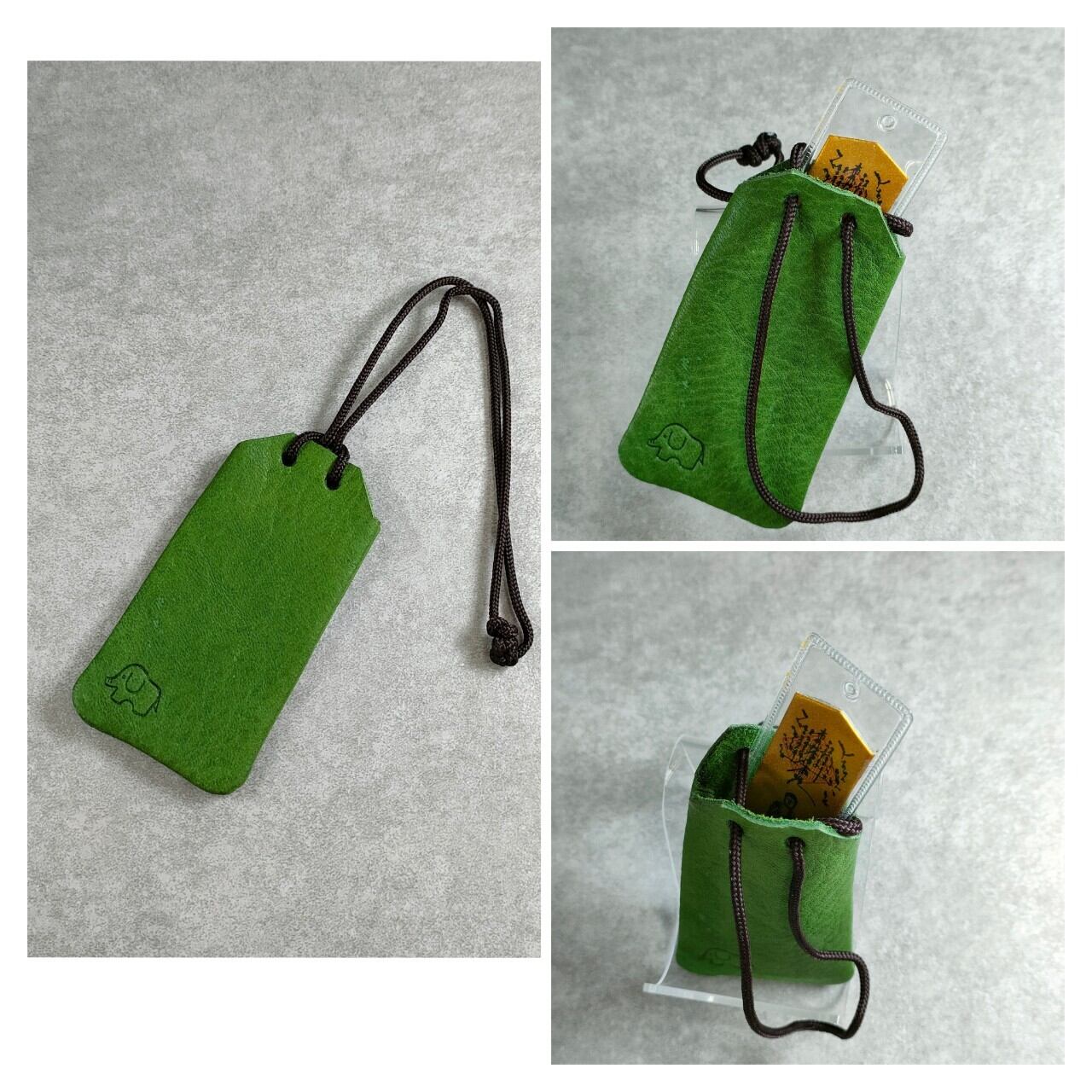 ここ身延町を含む峡南地域で駆除された鹿革”峡南レザー”を使用し、「coworker × みやげ館」のコラボレーションで製作されたハンドメイドのオリジナルお守りカバーです。