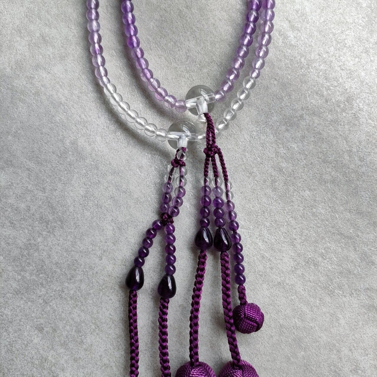 紫水晶と水晶で作る綺麗なグラデーションがとても美しい日蓮宗数珠です。